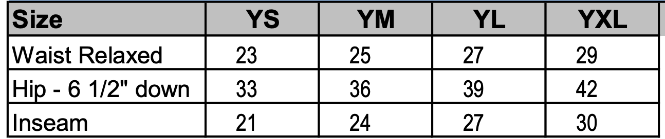 • 1/2" cotton braided drawcord on outside waistband (inside drawcord on sizes XS-S)